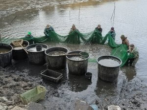 Výlov Zadního rybníka se uskutečnil v chladném ránu v sobotu 4.