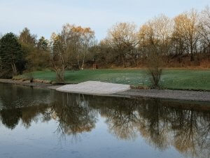Na Zadním rybníku jsme vytvořili malou písečnou pláž. Využili jsme poklesu hladiny rybníka z důvodu výlovu, abychom vyčistili odhalený břeh a navezli sem písek. Majitele