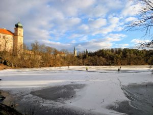 Upozornění na slabý led na Zámeckém rybníku