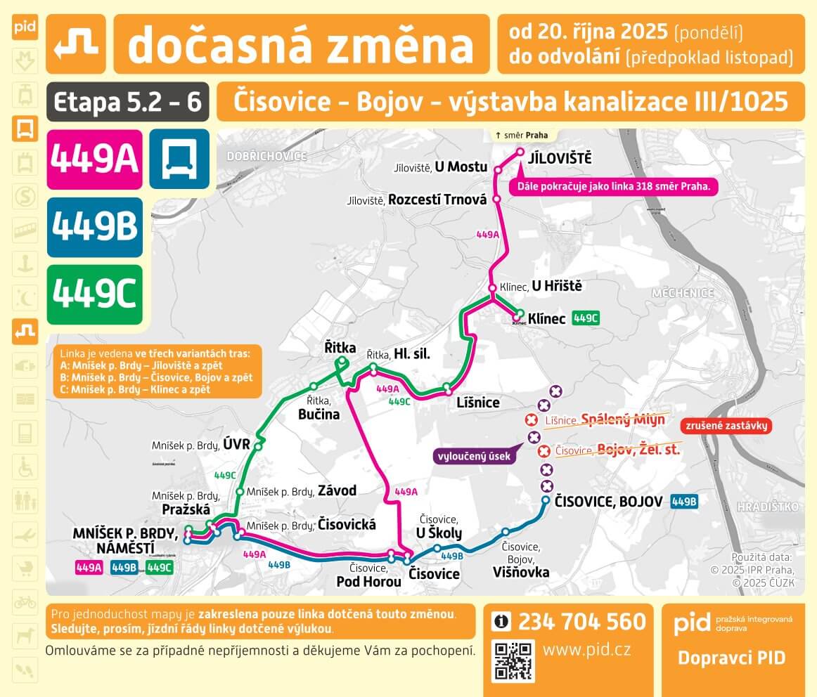 Od pondělí 20. října dochází k výluce autobusové linky 449 z důvodu zahájení další etapy stavby kanalizace v Bojově.
