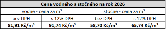 Ceny vodného a stočného pro rok 2026
