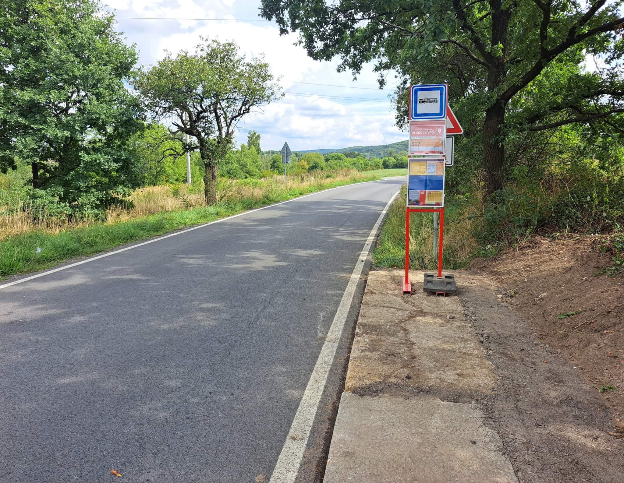 Zastávka „Mníšek p. Brdy, U Hřbitova“ nedaleko podchodu pod dálnicí D4