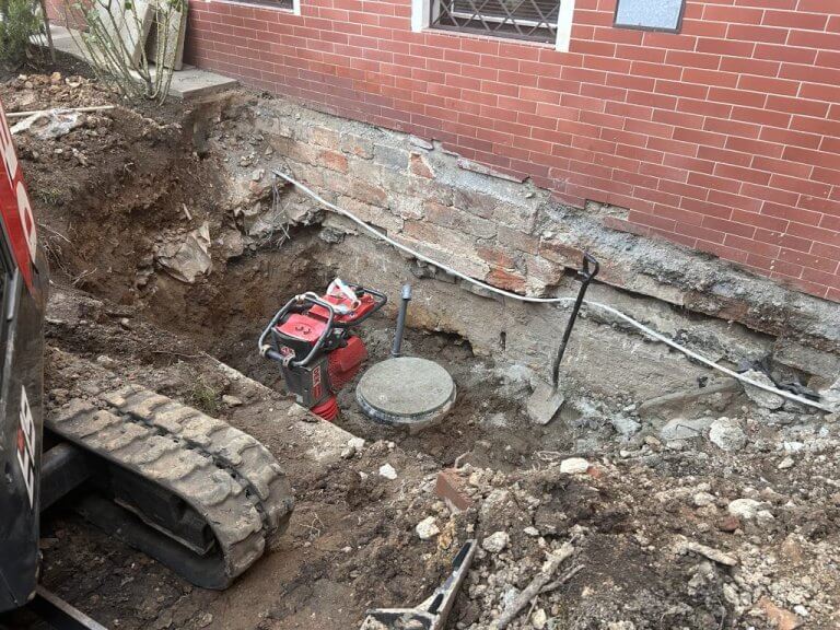 Umisťování nového lapolu za budovou kuchyně DpS
